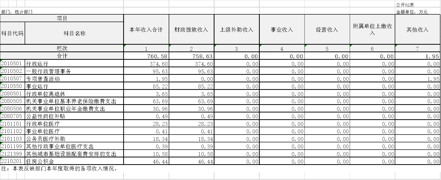 (一)本部门2024年度总收入762.18万元,其中本年收入760.58万元,较2023年度决算数减少95.97万元,下降11.02%。收入具体情况如下。
