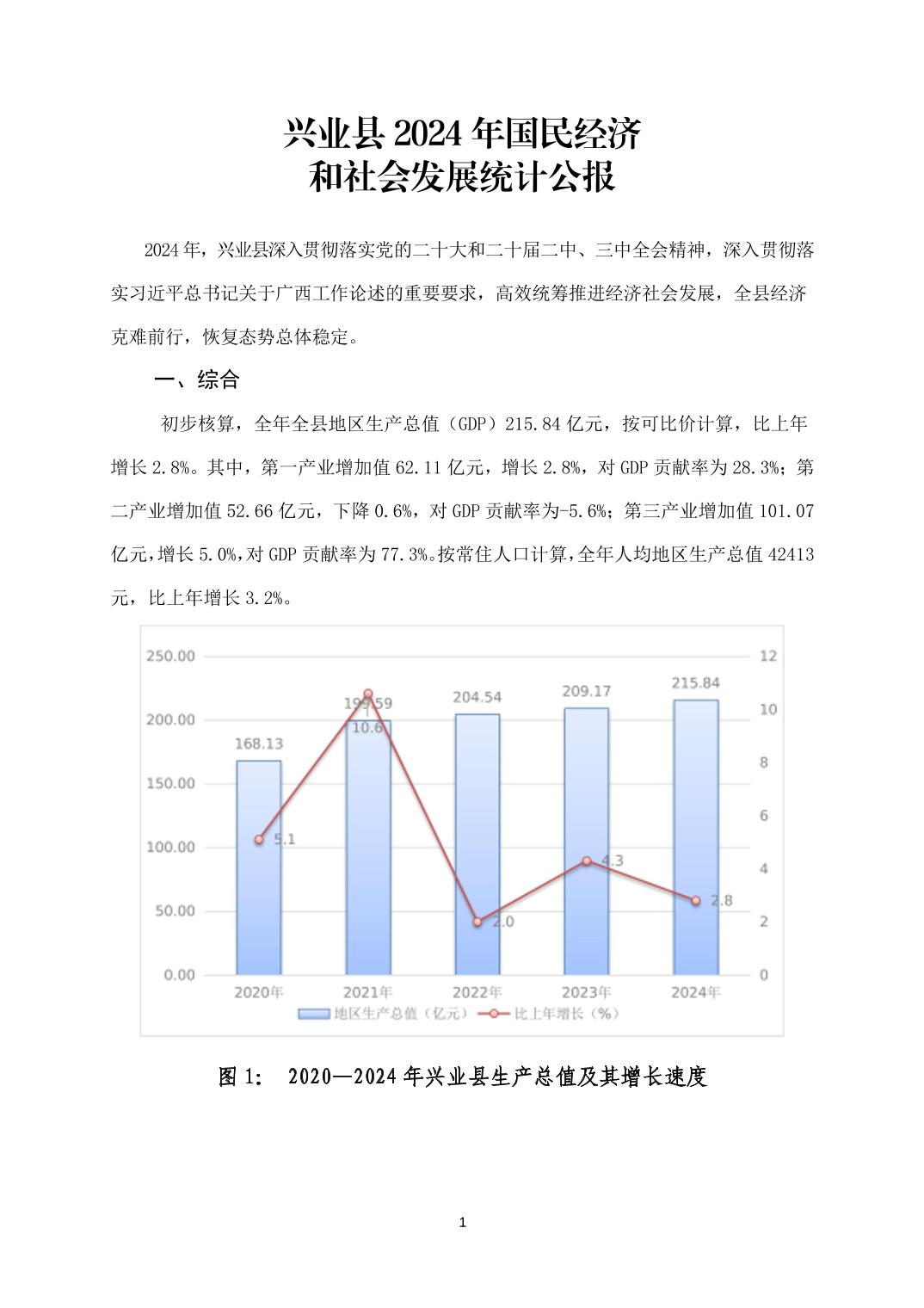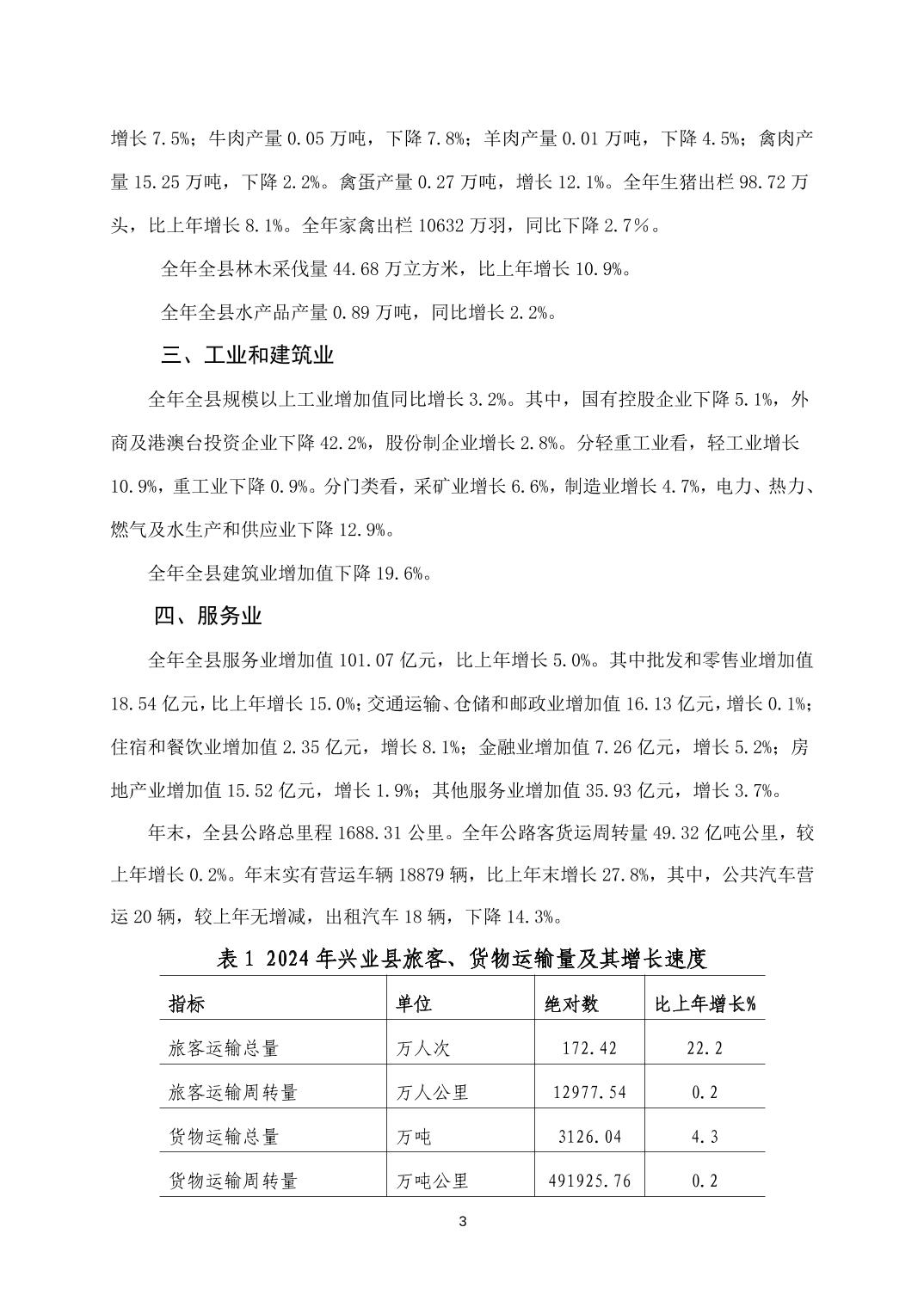 兴业县2024年国民经济和社会发展公报