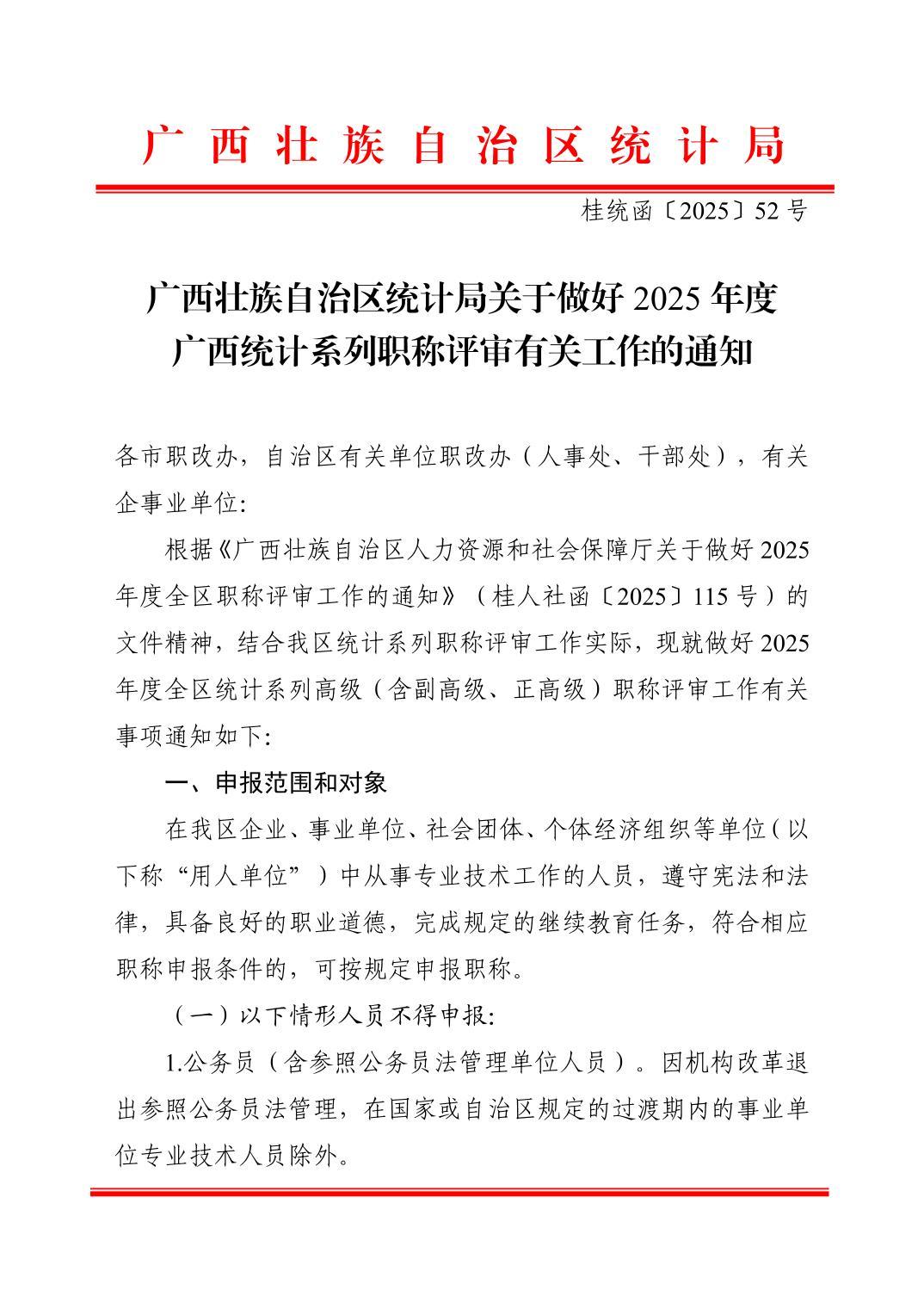 广西壮族自治区统计局关于做好2025年度广西统计系列职称评审有关工作的通知